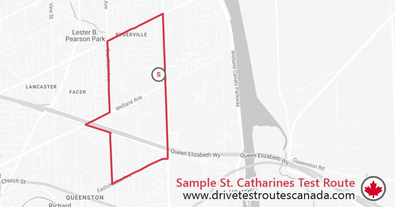 Disclaimer: This sample route is for demonstration purposes only and does not represent the actual test routes used during the test. Accurate St. Catharines driver test routes are available on our app.